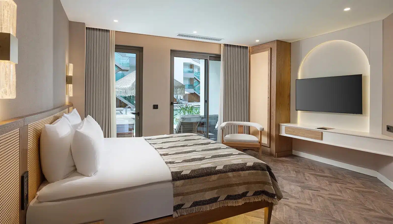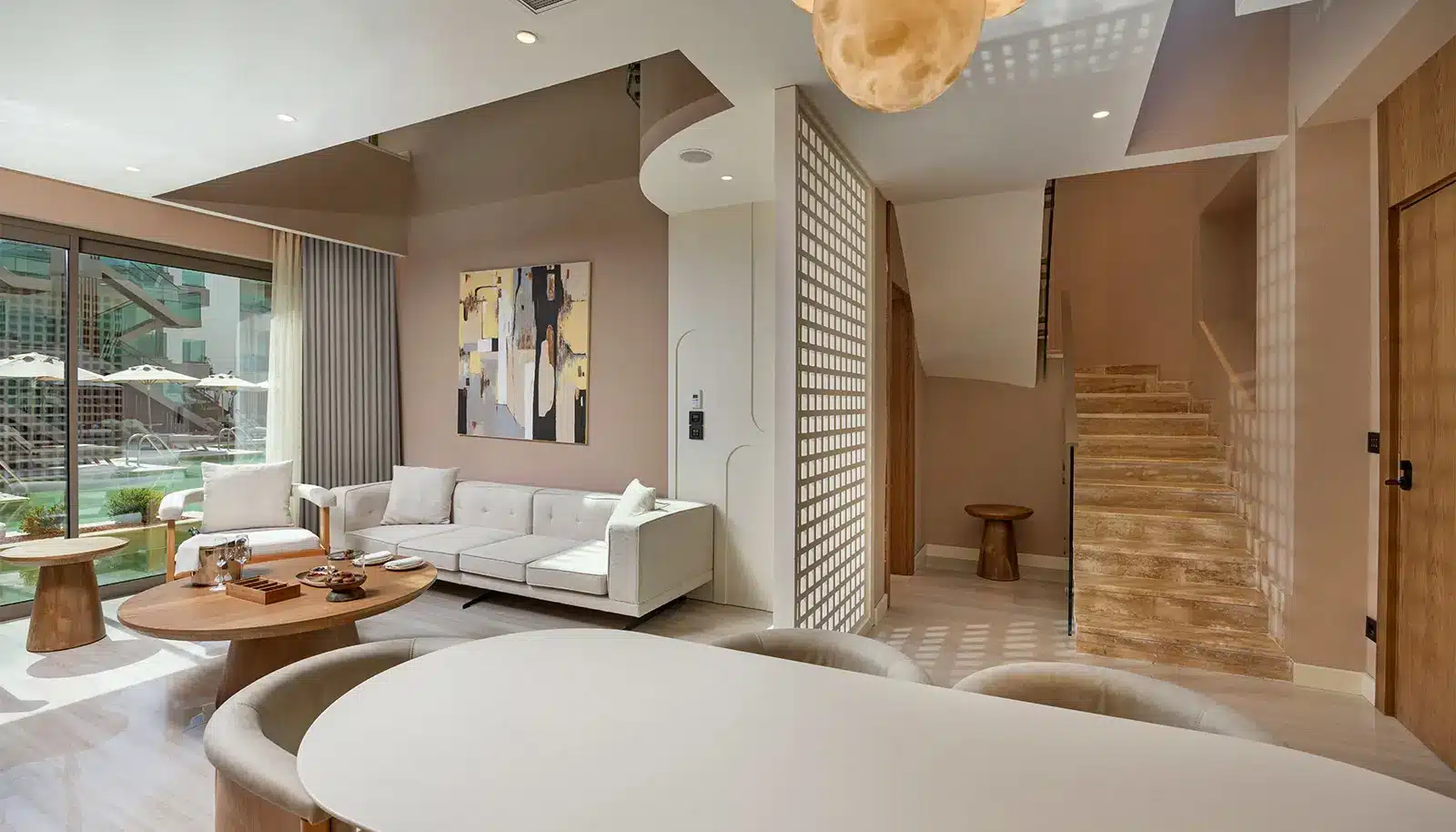 Genießen Sie ultimativen Luxus in dieser großzügigen und lichtdurchfluteten Suite, die für maximalen Komfort gestaltet wurde. Erleben Sie direkten Zugang zum Pool, wo Sie erfrischende Momente genießen oder sich in der Wärme der Sonne mit Ihren Liebsten entspannen können.